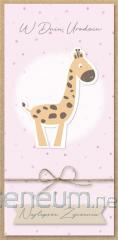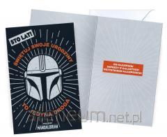 Karnet okolicznościowy z kopertą i życzeniami w środku.
