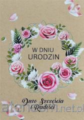 Karnet okolicznościowy z kopertą i życzeniami w środku.