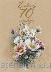 Karnet okolicznościowy z kopertą i życzeniami w środku.
