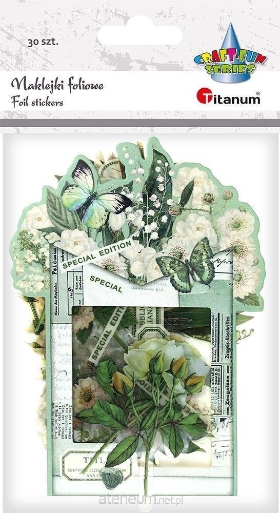 Naklejki foliowe w okładce tonacja biała kwiaty 9 wzorów po 3szt., etykiety retro 3szt. 30szt.