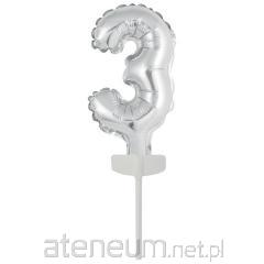 Balon foliowy mini cyfra 3 srebrna 7x12cm