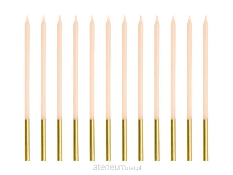 Świeczki urodzinowe gładkie w kolorze beżowym, wysokość ok. 14 cm. Zestaw zawiera 12 świeczek.(1 op. / 12 szt.)
