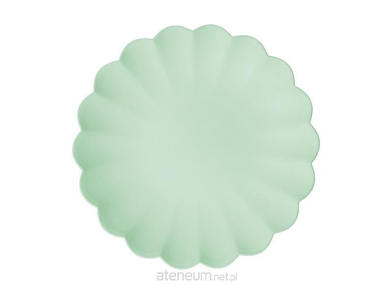 Talerzyki plastikowe Falbanka w kolorze szałwiowym, wymiary ok. 22 x 22 cm. Produkt wielokrotnego użytku.(1 op. / 4 szt.)
