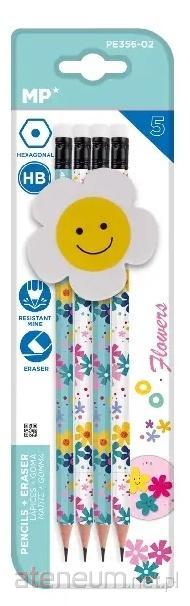 Ołówek sześciokątny HB z dodatkową gumką - Kwiaty 4szt