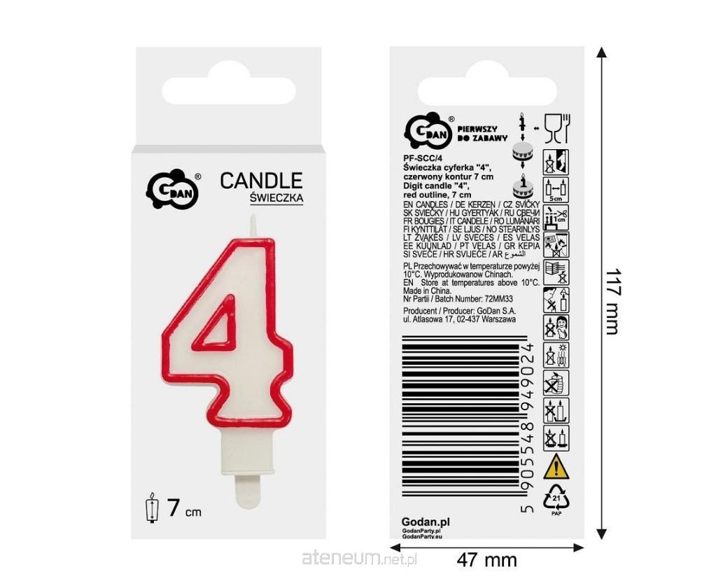 ŚWIECZKA CYFRA 4, CZERWONY KONTUR