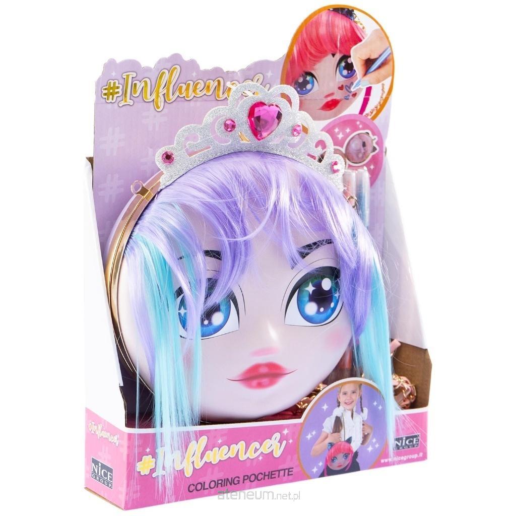 Torebka z paskiem/ łańcuszkiem na ramię. Twarz dziewczynki na froncie, którą można malować, zmyć przy użyciu wody i ponownie pomalować. Włosy można czesać, stylizować. 4 mazaki w zestawie. 4+