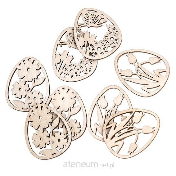 Drewniane ażurowe jajka w naturalnym kolorze, to świetny dodatek do wielkanocnych prac kreatywnych. W opakowaniu znajdziemy trzy wzory jajek, z ażurowymi wzorami tulipanów, innych kwiatów i motyli.
