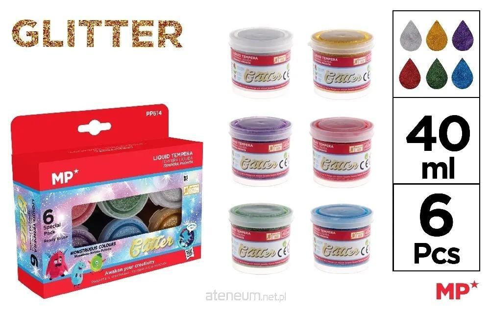 farba plakatowa tempera brokatowa 6 kolorów 6x40ml/opakowanie MP