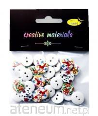 Guziki drewniane białe nadruk kwiaty 15mm 15g