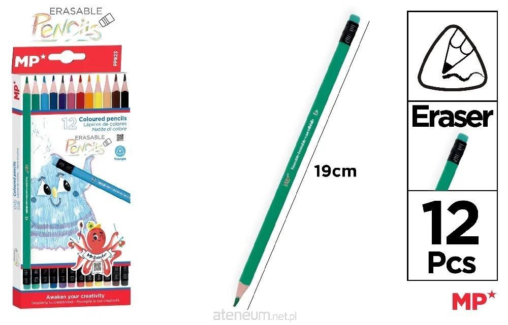 Kredki ołówkowe ścieralne z gumką 12szt./opakowanie MP