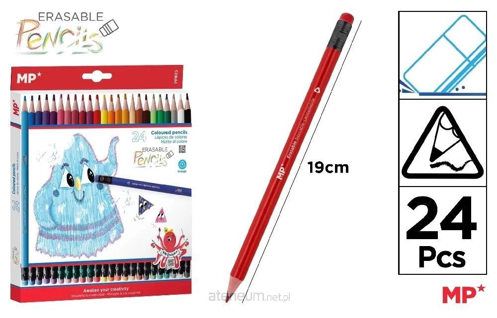 Kredki ołówkowe ścieralne z gumką 24szt./opak MP