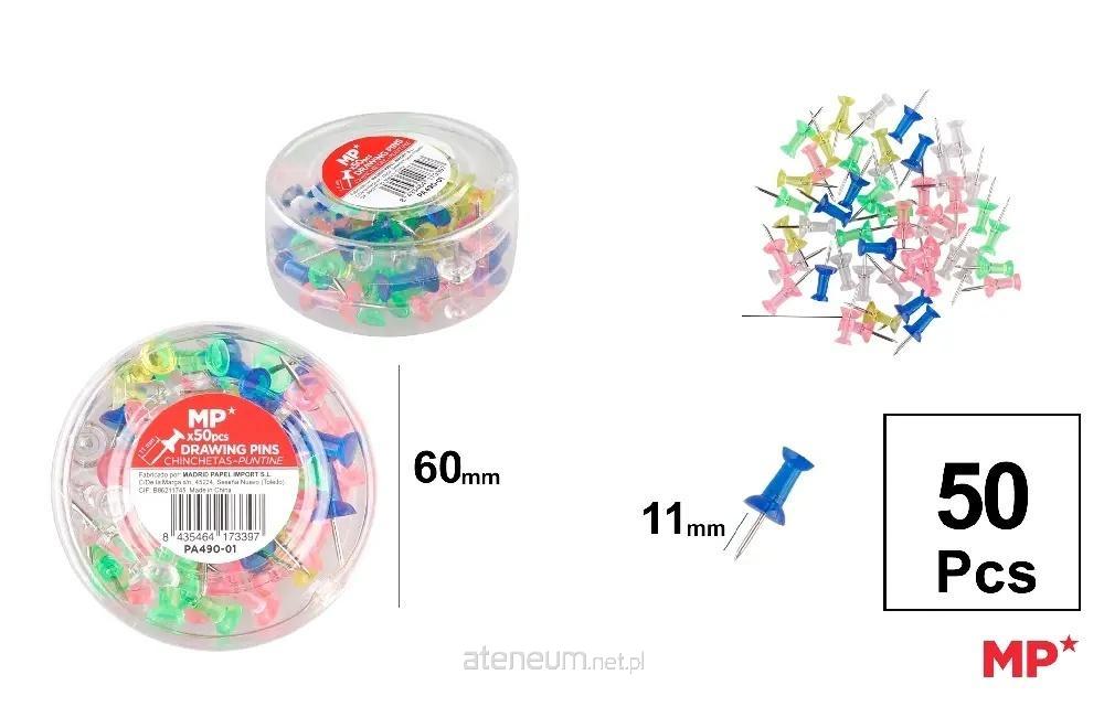 Metalowe pinezki o długości 11 mm z plastikową główką.Różne kolory. Pudełko po 50 sztuk.