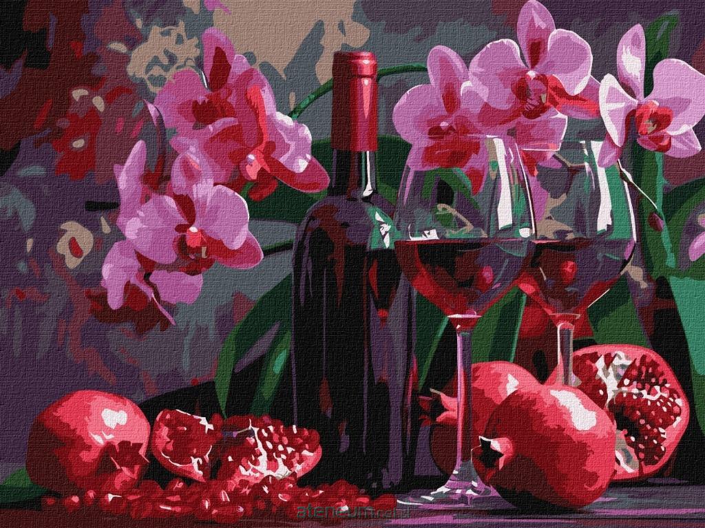 Malowanie po numerach - Wino i orchidee 30x40cm