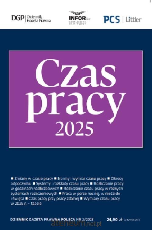 Czas pracy stanowi jeden z najważniejszych elementów stosunku pracy, bowiem wpływa zarówno na życie prywatne pracowników, jak i na funkcjonowanie przedsiębiorstw. Regulacje w tym zakresie pełnią wiele funkcji, wśród których priorytetem jest ochrona pracowników przed nadmiernym obciążeniem pracą. Zbyt długie godziny pracy mogą prowadzić do poważnych konsekwencji zdrowotnych oraz obniżenia koncentracji, co zwiększa ryzyko wypadków, zwłaszcza w przypadku prac niebezpiecznych. W kulturze zachodniej przyjęło się, że czas pracy powinien być ograniczony do 8 godzin dziennie, co ma zapewnić pracownikom możliwość realizowania życia prywatnego i odpoczynku. Ustawodawca mierzy się z niełatwym zadaniem, jakim jest pogodzenie interesów obu stron stosunku pracy. Obecne przepisy wydają się być pod tym względem w miarę zrównoważone. Niestety, ich praktyczne stosowanie nastręcza licznych trudności. Złożoność i nieprecyzyjność regulacji, a niekiedy nawet wewnętrzne sprzeczności, prowadzą do wątpliwości interpretacyjnych i problemów z wdrażaniem odpowiednich rozwiązań w życie. Potwierdzają to kontrole Państwowej Inspekcji Pracy (PIP). "Czas pracy 2025" - zagadnienia omówione w poradniku W publikacji m. in.: Zmiany w czasie pracy Normy i wymiar czasu pracy Okresy odpoczynku Systemy i rozkłady czasu pracy Rozlicznie czasu pracy w różnych systemach rozliczeniowych Praca w godzinach nadliczbowych Praca w porze nocnej, w niedziele i święta Czas pracy przy pracy zdalnej
