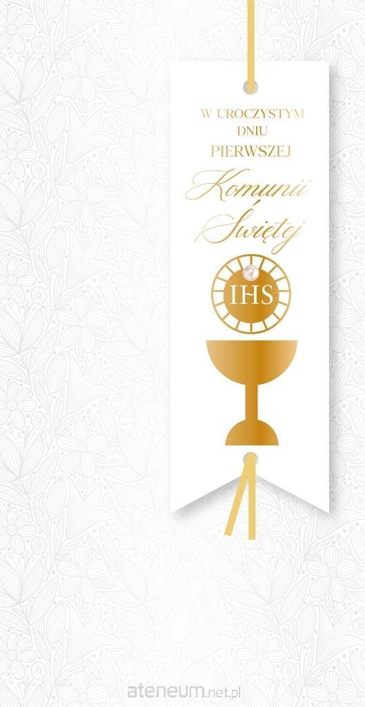 Kartka na I Komunię Świętą z serii Passion Moments PM-405 Każda kartka w kolekcji Passion Moments to małe arcydzieło - wyjątkowe i niepowtarzalne, piękne wizualnie. Kartki PM są bardzo bogato zdobione, a jednocześnie skromne i stylowe, cały efekt tkwi w detalach i doskonałym wykonaniu. W zależności od wzoru, na kartkach znajdują się dekoracje ze złotej, srebrnej, perłowej lub holograficznej folii, a także doklejki biżuteryjne, kokardki, laserowe wycięcia, wstążeczki i inne dodatki. Wnętrze karnetu to zawsze atrakcyjna grafika i tekst życzeń. Kartki mają w komplecie dopasowaną kopertę. Cechy szczególne: zdobienie: przynajmniej dwie folie (metaliczne/perłowe/holograficzne), elementy doklejane, wycięcia laserowe, wstążeczki - w zależności od wzoru, wnętrze: z delikatną grafiką, wyjątkowe życzenia w środku, w komplecie: dopasowana kolorystycznie koperta, wymiary karnetu po złożeniu: 11,4 x 21,5 cm. okazja: Komunia