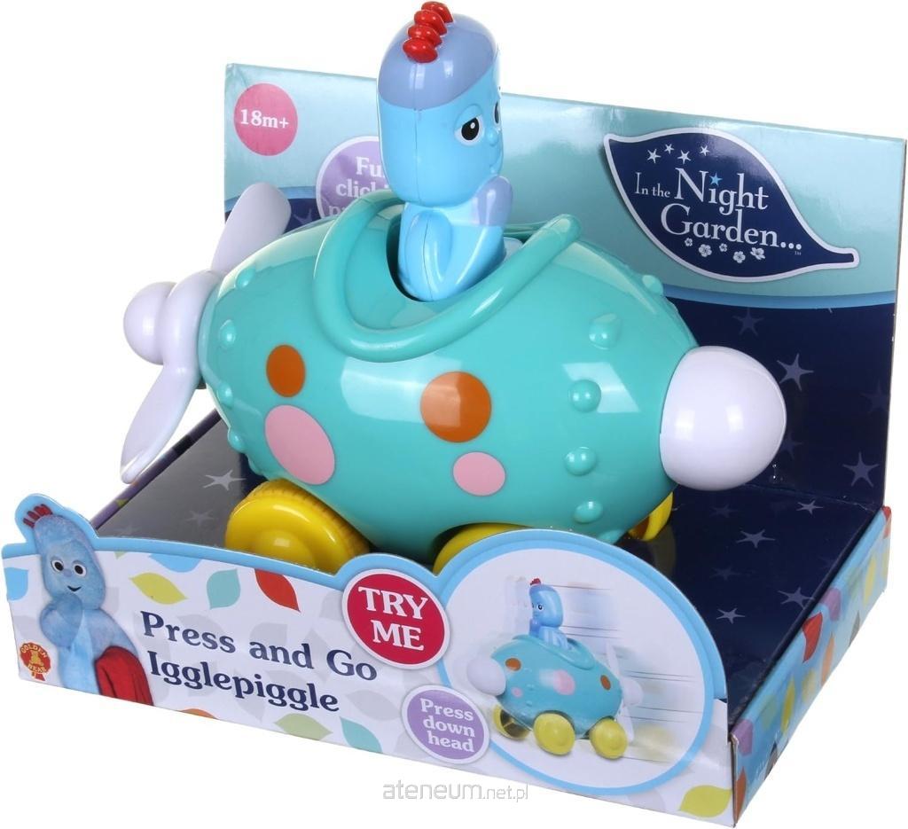 Zabawka z bajki Dobranocny Ogród -pojazd Pinky Ponk z figurką Igipigiel. Wersja Naciśnij i jedź - wystarczy wcisnąć figurkę i puścić, a pojazd samodzielnie pojedzie. Zabawka może również jeździć popychana rączką dziecka Z tyłu pojazdu znajduje się śmigło, które można obracać, wydaje wtedy ono dźwięk "klikania". Figurki nie można wyjmować Wielkość zabawki: ok. 14,5x12x7 cm Nie wymaga baterii Wysokiej jakości, bezpieczne tworzywo Wiek dziecka: 18 miesięcy+ Renomowany producent: Golden Bear Certyfikat bezpieczeństwa CE