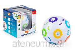 Weź w rączki bączek, dodaj do niego trzy piłeczki, dobry humor i wciśnij tłok - to właśnie przepis na muzyczną zabawę! Bączek wyposażony został w melodie i światełka, które to funkcje aktywuje wciśnięcie tłoka. W zestawie znajdziemy trzy piłeczki, a każda z nich ozdobiona jest innymi, wytłoczonymi kształtami: czerwona gwiazdkami, żółta listkami, a niebieska motylkami. Także szczyt tłoka zdobi kształt gwiazdki, a w jego przezroczystej kopule ukryło się mnóstwo kolorowych koralików, które uroczo grzechoczą przy wciskaniu tłoka lub poruszaniu zabawką.
