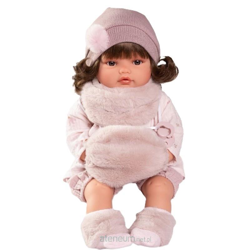 Lalka hiszpańska płacząca Beni z mufką 42 cm Antonio Juan 16383 Jeśli mała wielbicielka wyjątkowych zabawek marzy o hiszpańskiej lali przyjaciółce, idealnej do przytulania, przebierania i czesania, brunetka o imieniu Beni z pewnością wzbudzi zachwyt. Model 16383 z miękkim brzuszkiem, od renomowanego producenta Antonio Juan ma 42 cm wysokości i przypomina małą dziewczynkę. Po wyjęciu smoczka płacze i mówi: mama, papa. Stale otwarte, brązowe oczy o głębokim spojrzeniu opatrzone są długimi rzęsami i delikatnie namalowanymi brwiami. Lalka hiszpańska Antonio Juan Beni 16383 w modnym stroju Wykonana z wysokiej jakości, przyjemnego w dotyku winylu lalka hiszpańska Antonio Juan 16383 posiada materiałowy brzuszek wypełniony miękką wyściółką. Beni ubrana jest w oryginalny, szyty ręcznie strój, który można zdjąć: muślinowa pudrowa bluzeczka i krótkie spodenki ładnie prezentują się w komplecie z ciepłą czapeczką, pluszowym szaliczkiem, mufką i skarpetkami, zestaw uzupełnia specjalny smoczek magnetyczny na tasiemce. Atonio Juan Beni to unikalna lalka hiszpańska na prezent Lalka Beni 42 cm posiada wszystkie wymagane certyfikaty bezpieczeństwa. Jest przeznaczona dla dzieci od 3 roku życia. Wyprodukowana została w całości w Hiszpanii. Zapakowana w biało-różowe, ozdobne pudełko z wieczkiem, świetnie sprawdzi się jako oryginalny prezent dla wielbicielki wyjątkowych zabawek.