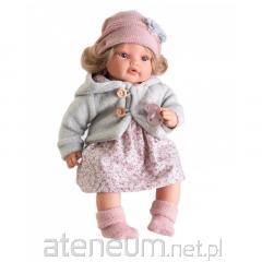 Lalka hiszpańska Petit ze śpiworkiem 27 cm Antonio Juan 12443 Wyjątkową, przeuroczą lalkę hiszpańską Petit cenionej marki Antonio Juan polecamy dzieciom już od drugiego roku życia. Filigranowy, 27-centymetrowy bobas waży ok. 650 g. Dzięki zastosowaniu miękkiego brzuszka świetnie nadaje się do przytulania. Główka z ręcznie wyrzeźbionymi włosami oraz ruchome kończyny wykonano z wysokiej jakości gładkiego, bezpiecznego dla dzieci winylu. Zwraca uwagę realistyczny wygląd twarzy: niebieskie oczy o głębokim spojrzeniu, malowane brwi i rzęsy, lśniące usta oraz delikatnie zaróżowione policzki. Z kolei na dłoniach i stopach są zarysowane autentycznie wyglądające paznokcie oraz linie papilarne. Atrakcyjności zabawce dodaje miękki różowy śpiworek. Bobas z miękkim brzuszkiem to propozycja pierwszej lali dla najmłodszych Lalka hiszpańska Petit 12443 jest ubrana w ciepłą bawełnianą, zapinaną na rzep różową piżamkę, zdobioną wzorzystą falbanką. Całość dopełnia miękka czapeczka dekorowana kokardką oraz smoczek zawieszony na satynowej tasiemce. Wszystkie części garderoby można z łatwością zdjąć, a bobasa przebrać. Luksusu dodaje firmowe kartonowe, solidne, pięknie zaprojektowane pudełko z wieczkiem. Może ono posłużyć jako opakowanie prezentowe a następnie łóżeczko dla lali.