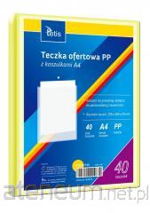 Teczka ofertowa PP z koszulkami. Posiada grzbiet i kieszeń opisową na przedniej okładce, format A4 Teczka posiada 13 przegród. Wymiary teczki: 330x245x35 mm, grubość tworzywa PP: 0,50 mm. Dostępna w pięciu kolorach (niebieski, czerwony, pomarańczowy, żółty, czarny). Opakowanie: folia 1 szt.