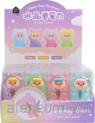 Temperówka podwójna z pojemnikiem na strużyny. Elastyczna obudowa w kształcie harmonijki sprawia, że temperówka nie stłucze się podczas upadku i nie pęknie. Przeznaczona do kredek i ołówków o średnicy 8 i 11 mm. Posiada wieczko zamykające otwory ostrzące. Dostępna w kilku kolorach.