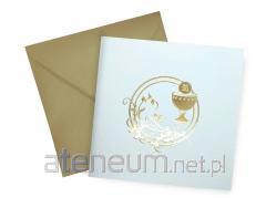 Karne w formacie A5, złocony i tłoczony, teksy życzeń w środku. Wydrukowany na wysokiej jakości papierze. W zestawie koperta.