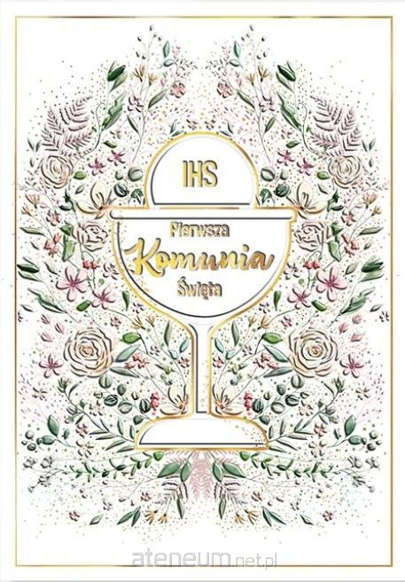 Karnet Swarovski kwadrat CL105 Komunia IHS Kielich