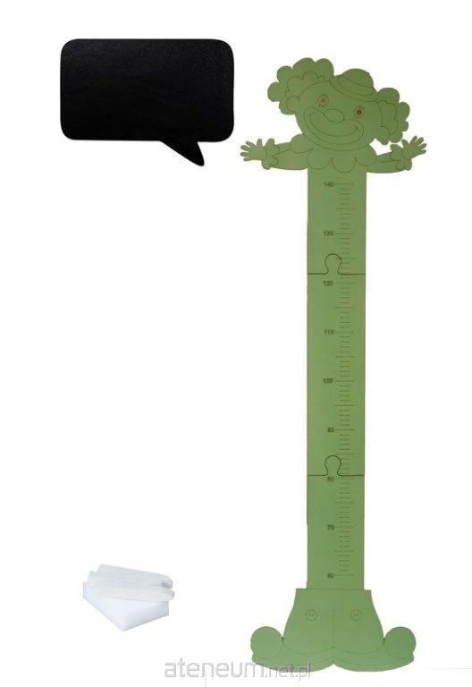 Drewniana Miarka wzrostu Klaun kolorowy z tablicą do pisania (do przyklejenia na ścianie). Zestaw zawiera kredę oraz gąbkę