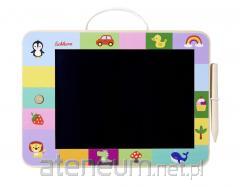 Zestaw zawiera duże tabliczki w 3 kształtach, do rysowania kredą. System mocowania wymienny na rzep, umożliwia to łatwy sposób wymiany tabliczki, także dzieciom. Wymiary tablic: - Polska: 40 x 37 cm - Domek: 44 x 39,5 cm - Kotek: 45 x 37 cm Zestaw zawiera kredę i gąbkę.