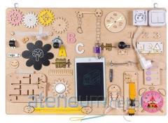 Drewniana magnetyczna rozkładana tablica z magnetycznym alfabetem, komplet 52 magnesów - małe i duże litery. Zestaw zawiera marker
