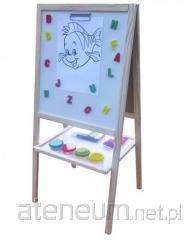 Obrotowa, kolor zielony, suchościeralno-kredowo-magnetyczna tablica z 2-rzędowym liczydłem. 3 rodzaje zegara z ruchomymi wskazówkami. Wyposażona w gąbkę i kredę. Marker w zestawie.