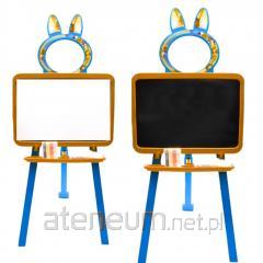 Obrotowa, suchościeralno-kredowo-magnetyczna fioletowa tablica z rolką papieru i liczydłem. Oprócz liczydła i papieru wyposażona w gąbkę, kredę, marker.