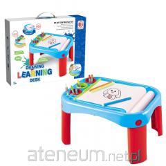 Obrotowa, suchościeralno-kredowo-magnetyczna kolorowa tablica. Wyposażona w gąbkę i kredę. Tablica zawiera marker.