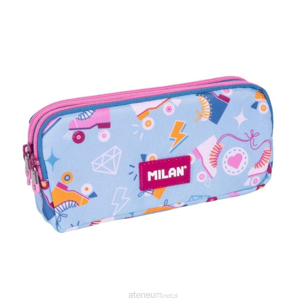 Piórnik saszetka MILAN z 3 szerokimi przegródkami ułatwiającymi organizację zawartości. Kolekcja Roller 2 z nadrukiem inspirowanym retro wrotkami 4-kołowymi. Nadruk stworzony z palety odcieni błękitu, musztardy i różu. Materiał zewnętrzny i wewnętrzny 100% poliester. Wymiary: 22 x 11 x 6,5 cm