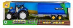 TRAKTOR ROLNICZY Z CYSTERNĄ I ZGRABIARKĄ Traktor z cysterną i zgrabiarką to idealna propozycja dla dzieci, które pasjonują się rolnictwem i uwielbiają odgrywać sceny z życia na farmie. Model ten wiernie odwzorowuje wygląd prawdziwego ciągnika rolniczego, a dołączone maszyny rolnicze umożliwiają realistyczne naśladowanie pracy na polu. Cysterna służy do przewozu płynów i nawozów, natomiast zgrabiarka pomaga w zbieraniu siana i przygotowaniu paszy dla zwierząt. Dzięki ruchomym elementom, takim jak obracające się grabie i detale cysterny, dziecko może odtwarzać różne etapy pracy w gospodarstwie rolnym. Solidna konstrukcja oraz duże, terenowe koła sprawiają, że pojazd doskonale radzi sobie na różnych nawierzchniach, co pozwala na zabawę zarówno w domu, jak i na świeżym powietrzu. Traktor z przyczepą rozwija kreatywność, zdolności manualne oraz koordynację ruchową, zachęcając dzieci do samodzielnej zabawy i poznawania zasad funkcjonowania nowoczesnego rolnictwa. To doskonały pomysł na prezent dla małych fanów maszyn rolniczych, którzy chcą poczuć się jak prawdziwi rolnicy. SPECYFIKACJA: Materiał: Wysokiej jakości plastik Kolor: Zielony traktor, zielona cysterna, czerwona zgrabiarka Funkcje: Ruchome elementy cysterny i zgrabiarki, możliwość odczepiania maszyn Wymiary zestawu: 52 cm x 11 cm x 9 cm Wymiary opakowania: 59 cm x 13 cm x 11 cm ZAWARTOŚĆ ZESTAWU: Traktor rolniczy Cysterna do transportu płynów Zgrabiarka do siana Oryginalne opakowanie