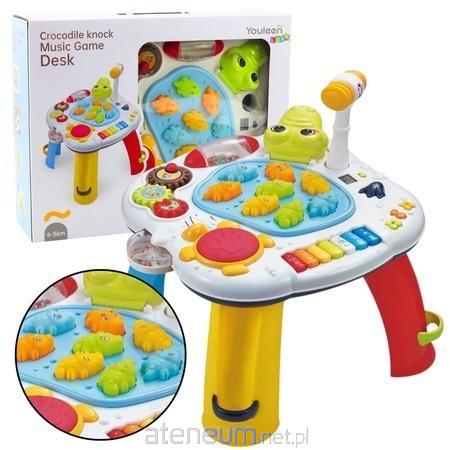 STOLIK EDUKACYJNY INTERAKTYWNY KROKODYL Interaktywny stolik edukacyjny to wszechstronna zabawka, która łączy naukę i zabawę, wspierając rozwój dziecka poprzez interaktywne funkcje dźwiękowe, świetlne i manualne. Stolik został zaprojektowany tak, aby angażować dziecko na wiele sposobów, pomagając mu rozwijać zdolności motoryczne, słuchowe i poznawcze. Zabawka oferuje siedem klawiszy pianinka, które pozwalają na grę prostych melodii, a także emitują odgłosy zwierząt, pobudzając ciekawość dziecka i rozwijając jego percepcję słuchową. Centralnym elementem stolika jest gra zręcznościowa z młotkiem, w której dziecko uderza w kolorowe figurki, aktywując efekty dźwiękowe i świetlne. Dzięki tej funkcji maluch doskonali swoją koordynację ręka-oko i uczy się precyzji ruchów. Interaktywna głowa krokodyla, która może otwierać i zamykać pyszczek, dodaje element zaskoczenia, czyniąc zabawę jeszcze bardziej ekscytującą. Dodatkowo różne interaktywne przyciski aktywują wesołe melodie i efekty świetlne, które tworzą angażujące środowisko do nauki i zabawy. Dzięki stabilnej konstrukcji i kolorowemu designowi, stolik jest idealnym wyborem dla najmłodszych dzieci od 6. miesiąca do 3. roku życia. Jego ergonomiczna wysokość umożliwia wygodną zabawę w pozycji siedzącej i stojącej. SPECYFIKACJA: Wymiary stolika: 42 x 38 cm Wymiary opakowania: 53 x 14,7 x 41,2 cm Zasilanie 3x 1.5V AA Materiał: Wysokiej jakości tworzywo sztuczne Funkcje: Pianinko z odgłosami zwierząt Gra zręcznościowa z młotkiem Efekty dźwiękowe i świetlne Interaktywna głowa krokodyla ZAWARTOŚĆ ZESTAWU: Interaktywny stolik edukacyjny Młotek do gry zręcznościowej Wbudowane efekty dźwiękowe i świetlne