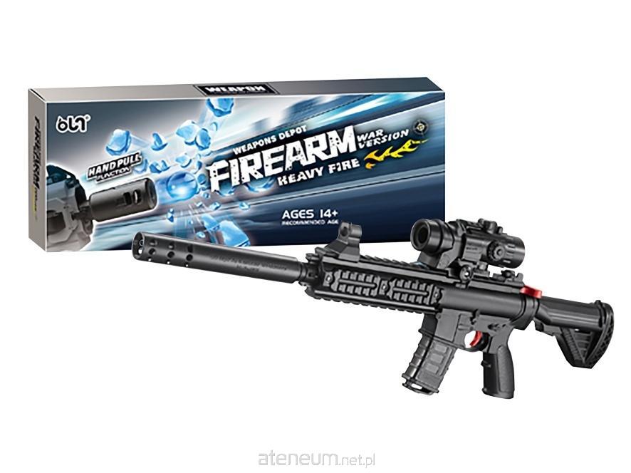 W zestawie: karabin pneumatyczny wym. 39 x 18 x 4 cm, tłumik, celownik z magazynkiem na kulki hydrożelowe, paczka z kulkami hydrożelowymi, funkcje: by strzelić należy naciągnąć kurek, następnie nacisnąć spust, wym. Opak. 40 x 15 x 5,5 cm, 8+
