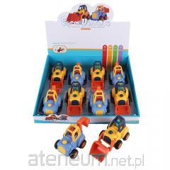 W zestawie Traktor Class Kids znajduje się pojazd traktora i przyczepa. Traktor i przyczepa są w kolorze zielonym z kołami w kolorze czarnym z czerwonymi dodatkami. Po naciśnięciu odpowiedniego przycisku na kabinie, traktor wydaje dźwięk silnika, a także zapalają się światła ostrzegawcze. Przyczepa typu Cargos ma otwieraną tylną klapę, a cały zestaw ma ok. 28 cm długości. Swoimi słodkimi oczkami pojazdy CLAAS Mini oczarowują najmłodszych i wywołują uśmiech na ich twarzach. Zabawka jest przyjazna dla dzieci dzięki zaokrąglonym rogom i krawędziom i idealnie pasuje do rączek małych dzieci.