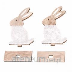 Drewniane zajączki z futerkiem i podstaw 10cm 2szt
