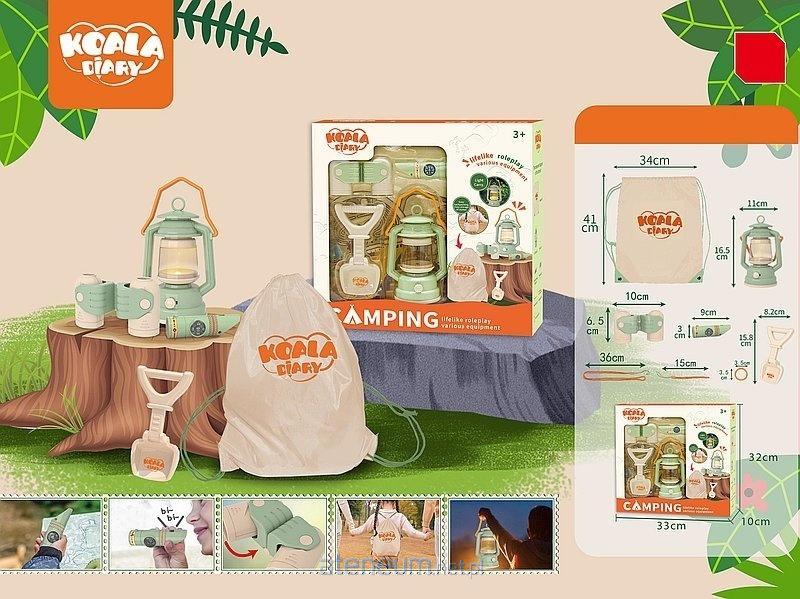 zestaw kempingowy 5 elem, lampa, lornetka, łopata, kompas, worek; 33x32x10cm, W/B
