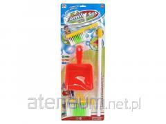 Zestaw do sprzątania powstał na licencji firmy Vileda i składa się z miotły na kiju, zmiotki i szufelki, oraz mopa paskowego. Miotła i mop mają około 55 cm wysokości, a charakterystyczne dla koloru marki biało-niebieskie włosie miotły i zmiotki jest na tyle gęste i trwałe, że spokojnie nadaje się do robienia prawdziwych porządków. Zarówno miotła jak i zmiotka przydaje się świetnie do sprzątania drobnych klocków, czy niewielkich domowych porządków w dziecięcym pokoju. Zestaw zawiera także mop z paskami w kolorze niebieskim, którym z powodzeniem podczas zabawy możemy umyć podłogę. Od prawdziwych akcesoriów odróżnia je tylko wielkość dostosowana dla dzieci. Bawiąc się w sprzątanie domu, dzieci zapoznają się z dorosłymi zadaniami, ćwiczą motorykę i rozwijają swoją wyobraźnię.