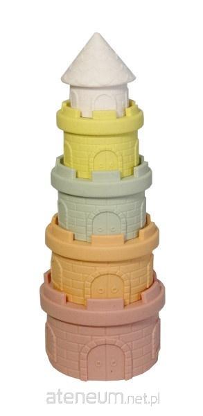 Gumowe klocki dla najmniejszych dzieci. Po ułożeniu piramidki powstaje wieża zamkowa. Produkt rozwija u maluszków logiczne myślenie. Produkt zapakowany w worek z siateczki.