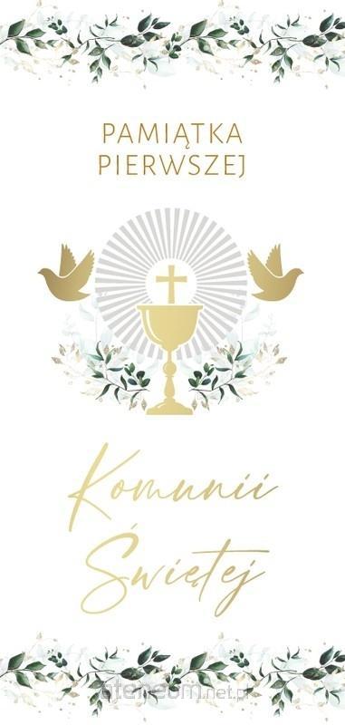 Karnet A5 z klapką Komunia. Stokrotka i merta