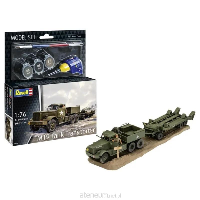 Revell Model Set M19 Tank Transporter - Skala 1:72 Producent: Revell Kod produktu: 63364 EAN: 4009803633640 Skala: 1:72 Rekomendowany wiek: 13+ Model M19 Tank Transporter to wiernie odwzorowany zestaw transportera czołgów składający się z ciągnika M20 i naczepy Rogers M9. Używany podczas II wojny światowej, pozostał w służbie w niektórych armiach jeszcze przez kolejne 30 lat. Zestaw zawiera: Dioramę z odciśniętymi śladami opon 2 figurki kierowców Kalkomanie dla czterech wersji: U.S. Army, 1. Dywizja Pancerna, Francja/Belgia 1944 British Army, nieznana jednostka, Front Zachodni 1944/45 Bundeswehr, 1956, nieznana jednostka Izrael, 7. Brygada Pancerna, do połowy lat 70. Podstawowe farby Revell Aqua Color Klej Revell Contacta Professional Mini Pędzel Ilustrowaną, wielojęzyczną instrukcję montażu Model do sklejania - wymaga samodzielnego montażu. Cena dotyczy jednej sztuki. Ostrzeżenie: produkt nieodpowiedni dla dzieci poniżej 3 lat. Zawiera małe elementy - ryzyko zadławienia.