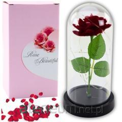 Wieczna róża w szkle oświetlenie LED czerwona
