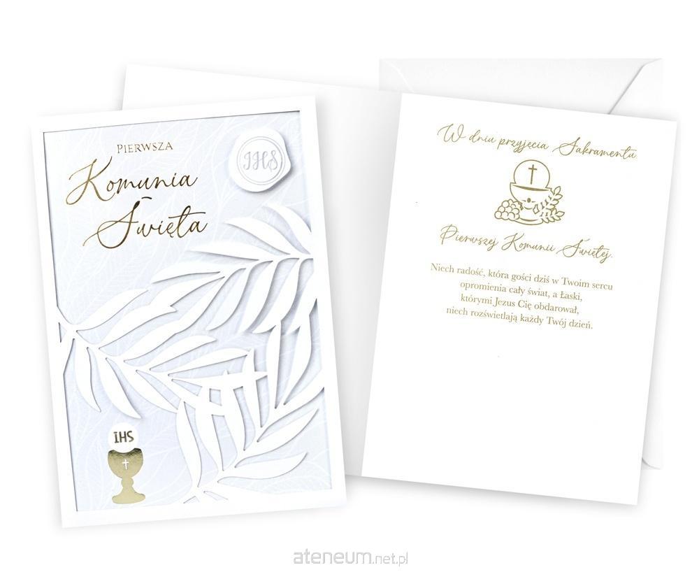Kartka B6 z ozdobnej serii Dream Cards na Komunię - nieduża, ale robi wrażenie dzięki atrakcyjnej kolorystyce i ciekawym zdobieniom.