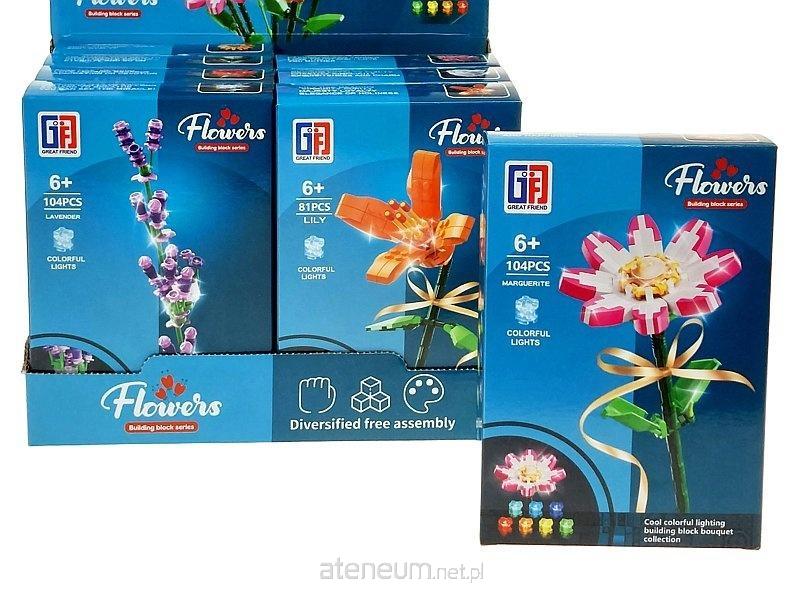 zestaw klocków ze światlem, kwiaty, od 70 do 121 części (12,7x18,5x4cm, Box),