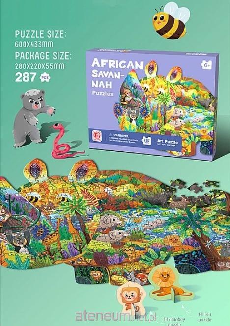 zestaw puzzli 287 części, afrykańska sawanna, obrazek 60x43,3cm; 28x22x5,5cm, Box