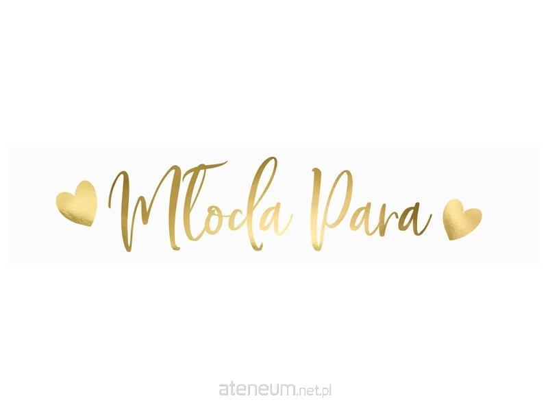 "Tablica rejestracyjna w kolorze białym ze złotym lustrzanym napisem Młoda Para, szerokość ok. 52 cm, wysokość ok. 11,5 cm. "