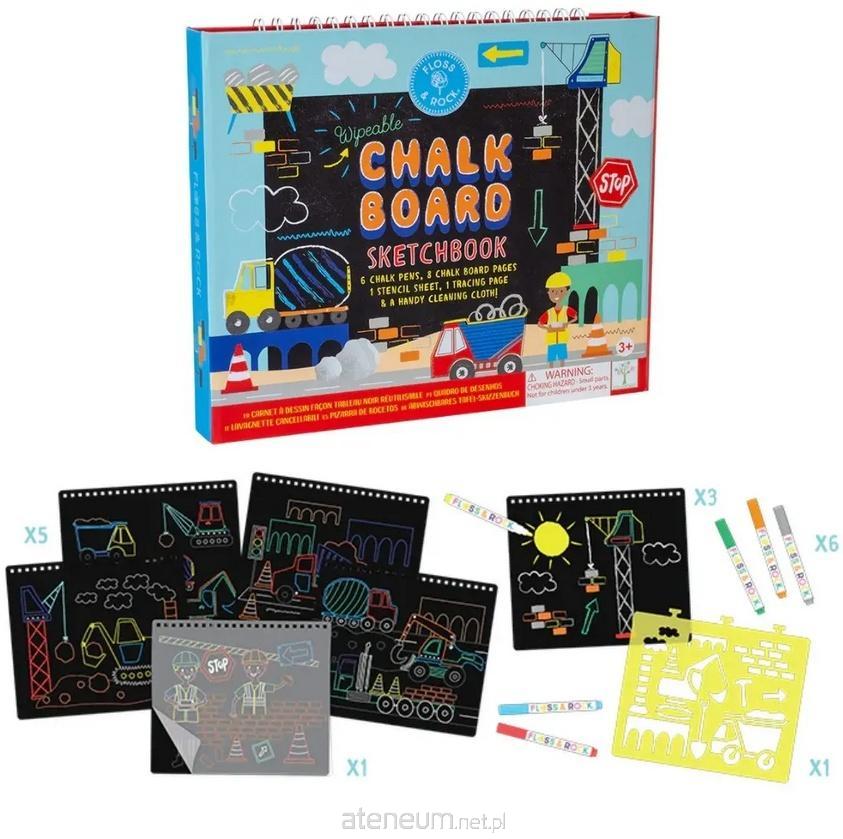 Zabawa szkicownikiem z kredowymi pisakami, idealna dla małych artystów! To genialny szkicownik z kartami, które można pokolorować pisakami na bazie kredy. Szkicownik zawiera 5 kart z gotowymi ilustracjami do pokolorowania i 3 puste karty, na których można tworzyć własne wzory i obrazki. Znajduje się tam również arkusz kalki kreślarskiej oraz arkusz szablonów z koparką, dźwigiem, betoniarką i innymi. Oba te arkusze można przypiąć do spirali szkicownika. W zestawie znajduje się 6 kolorowych pisaków kredowych oraz ściereczka do czyszczenia, dzięki której można zetrzeć karty i rozpocząć kreatywną zabawę od początku.